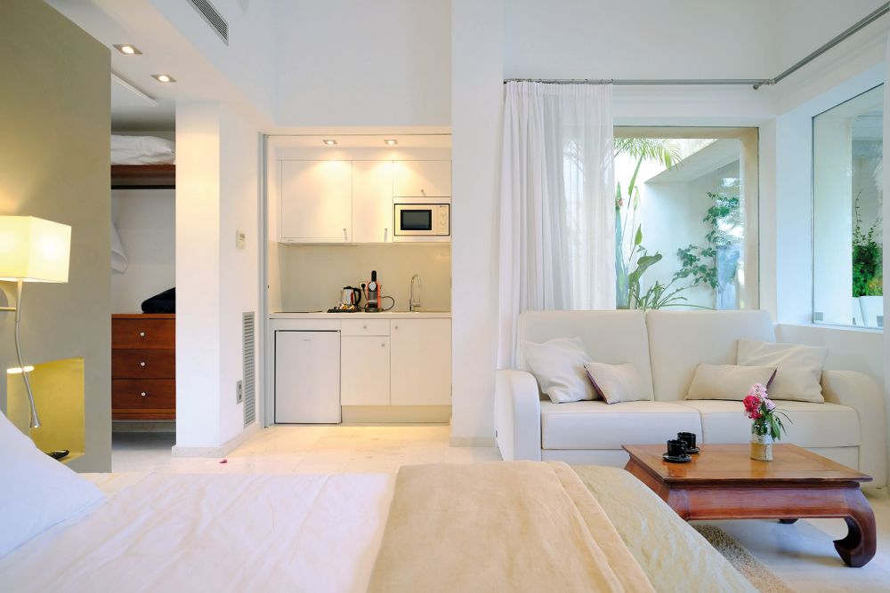 - Certaines villa avec 1 chambre à coucher (types 22 et 29) ont une kitchenette avec table de cuisson à induction (2 plaques) et micro-ondes et certaines disposent d'une porte coulissante entre le coin dormir et le salon avec divan-lit. La kitchenette et la porte coulissante ne peuvent pas être garanties