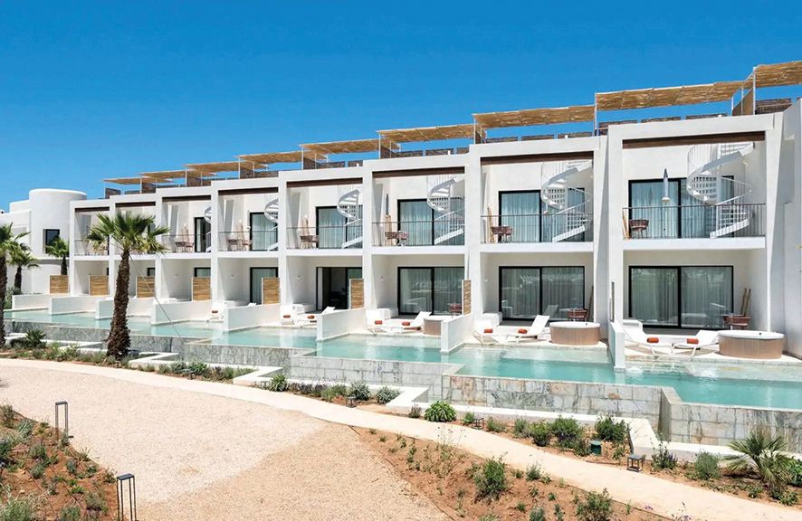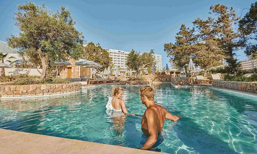 L'hôtel de luxe TRS Ibiza Hotel allie une relaxation suprême à l'atmosphère trépidante d'Ibiza. Vous serez choyé par un service de première classe, une gastronomie exquise et un service de majordome. L'hôtel bénéficie d'un bel emplacement sur la côte ouest, au-dessus des baies Cala Gració et Cala Gracioneta. Idéal pour profiter du célèbre coucher de soleil de San Antonio et une excellente base pour explorer toutes les stations incontournables et à la mode de cette île blanche.