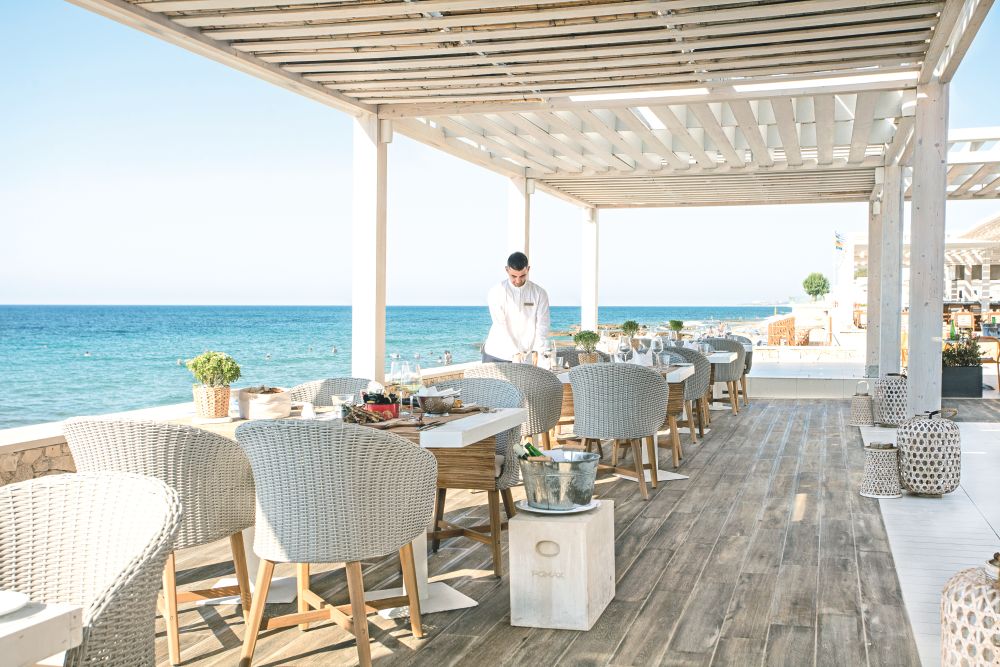 - Restaurants à la carte: grec (déjeuner en haute saison, dîner), italien (déjeuner, dîner), 'guest' Lobsteria (15/6-15/9, dîner), asiatique (dîner), gastronomique (adults only, dîner)
