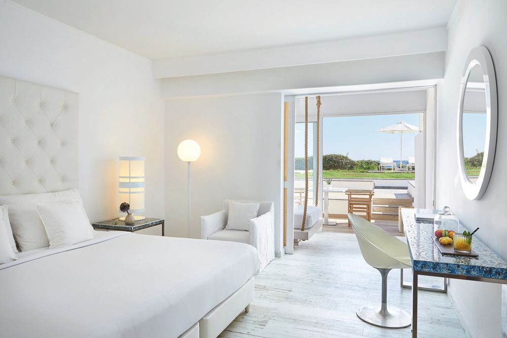 Qui dit Grecotel LUXME White, dit plusieurs restaurants et bars, service efficace avec le sourire, chambres spacieuses et chouette animation en journée et soirée. Cet hôtel de la célèbre chaîne Grecotel se niche dans un cadre de verdure et borde une longue et étroite plage de sable et de galets. Les chambres avec vue sur mer ou avec une piscine commune sont incontournables. L'établissement propose une formule LUXME All Inclusive de luxe avec repas à la carte, boissons premium...