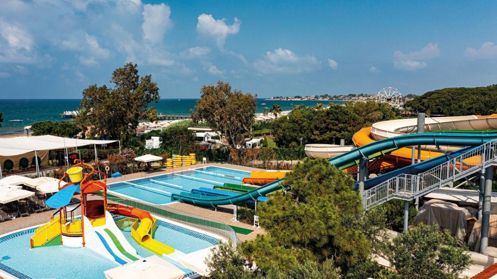 L'Ali Bey Resort est le fleuron absolu de Side! Proche du centre de Side où vous pourrez flâner dans les nombreuses boutiques, joliment situé dans un cadre verdoyant, l'Ali Bey Resort compte 12 bâtiments séparés et vous réserve un excellent service. Les buffets et les plats à la carte sont très raffinés. Gâtez vos papilles gustatives! En outre, vous profitez d'un vaste parc aquatique (large de 15.000 m2) avec pas moins de 8 toboggans et une piscine dédiée aux activités.