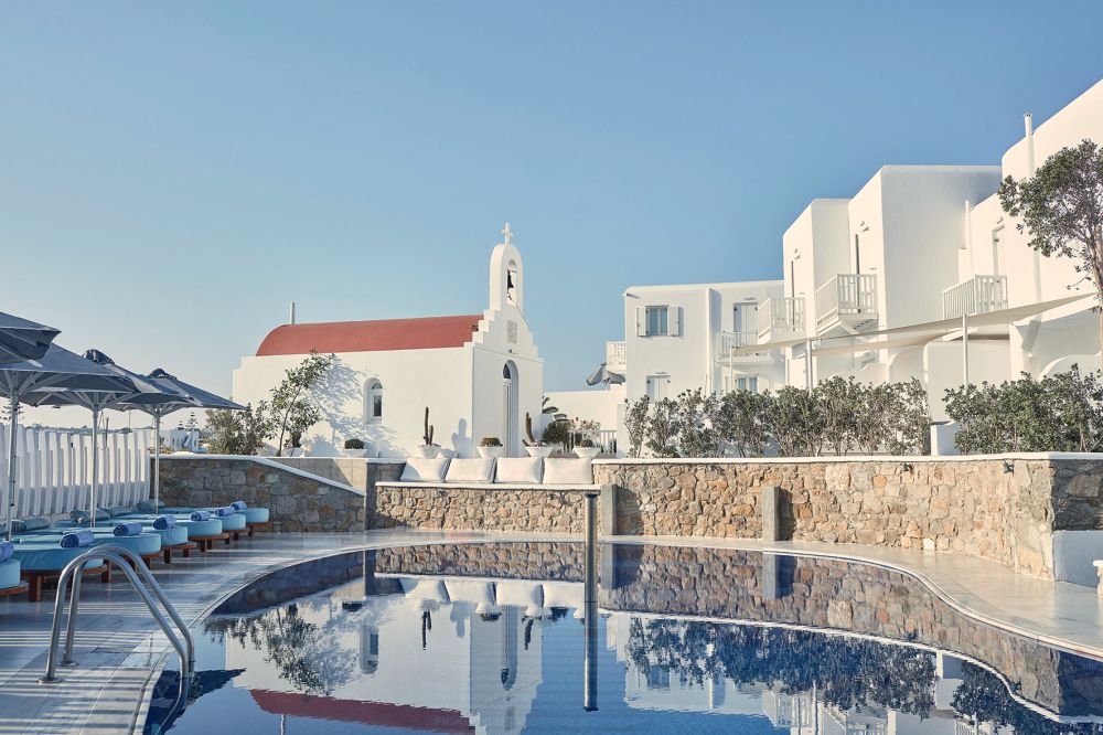 Het vroegere Myconian K Hotel Thalasso Spa werd opgedeeld in aparte hotels, en dit is het resultaat. Myconian Kyma is uitstekend gelegen, op de heuvel boven Mykonos-stad maar toch vlak bij het centrum, zodat u met gemak de omgeving te voet kunt verkennen. Maar het spacentrum, dat is nog steeds hetzelfde pareltje gebleven, met vijf zwembaden voor thalassotherapie en een ruim aanbod aan verzorgingen en massages.