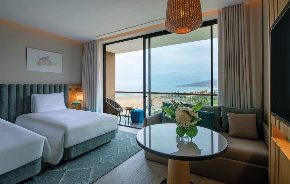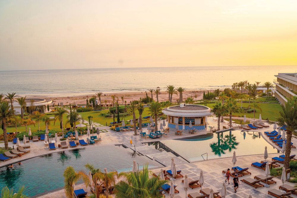 Het Hyatt Regency Taghazout ligt verscholen aan de goudgele zuidwestkust van Marokko. Een regio die bekendstaat om zijn relaxte surfcultuur en prachtige stranden. Overdag leef je je lekker uit op het water of maak je een uitstap naar het bruisende Agadir, waar kleurrijke soeks en lokale geuren en smaken op je wachten. Terug in het resort geniet je van culinaire hoogstandjes met een mix van Marokkaanse, Franse en Italiaanse gerechten in de restaurants of bij de sfeervolle Hyatt Beach Club. Ontspan bij één van de twee infinitypools, herlaad in de spa, of daag jezelf uit op de padelbaan of in het moderne fitnesscentrum. Voor de kleintjes is er een kids club en elke vrijdag verandert het strand in een feestelijke hotspot voor volwassenen. Met palmbomen, zachte loungebedden en een uitzicht dat reikt tot aan de horizon, vormt het Hyatt Regency Taghazout het ultieme decor voor jouw vakantie.