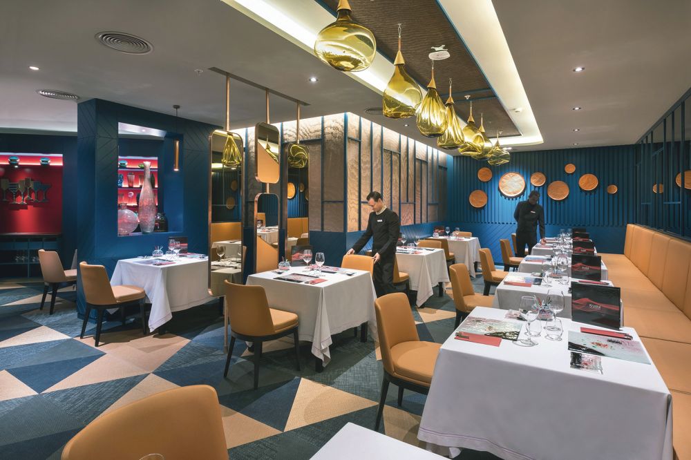 - Hoofdrestaurant met terras (avondmaal in buffetvorm, showcooking, vegetarisch gerecht, 2x/week speciale avond)