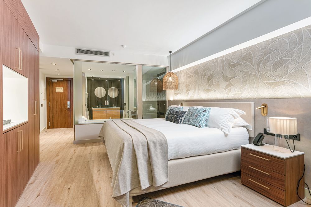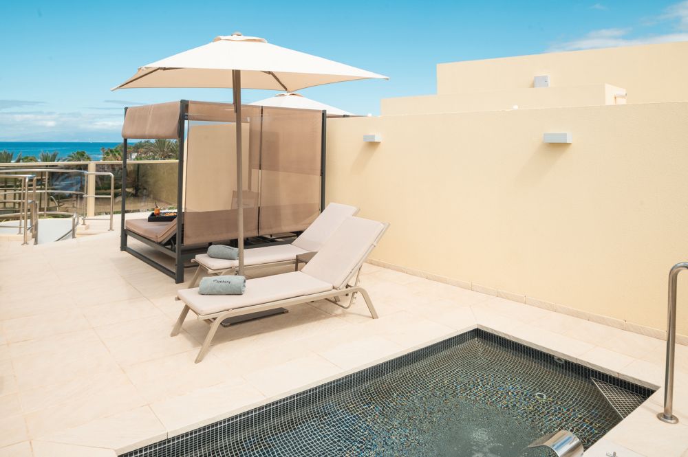 Eén persoon in superieure kamer met plunge pool, badjas, slippers, ligzetel en zeezicht (type 28)
