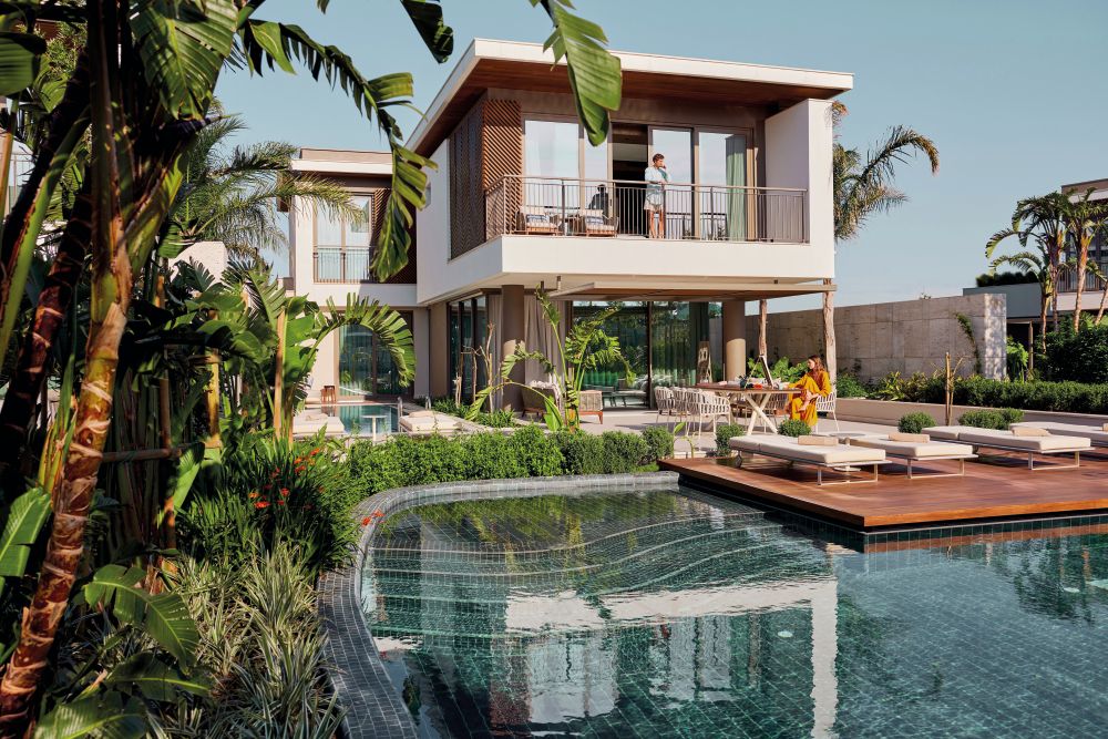 - Er zijn 2 grote gedeelde privézwembaden (zoet water) toegankelijk voor alle villa's en dan ook nog een kleiner privézwembad (zout water) voor elke villa apart