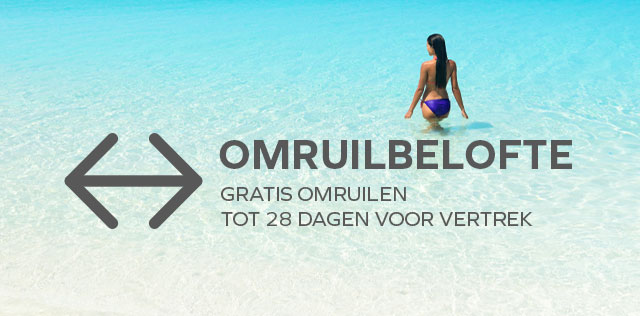 Bij VIP Selection kunt u het hele jaar door gebruik maken van de omruilbelofte, zo kunt u uw vakantie altijd kosteloos omboeken naar een andere vertrekdatum en/of een andere bestemming en dit tot 28 dagen voor vertrek